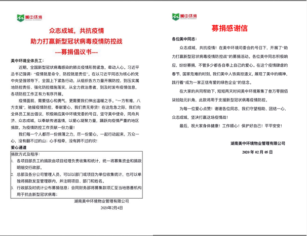 記美中環(huán)境為抗擊疫情募捐活動(dòng)