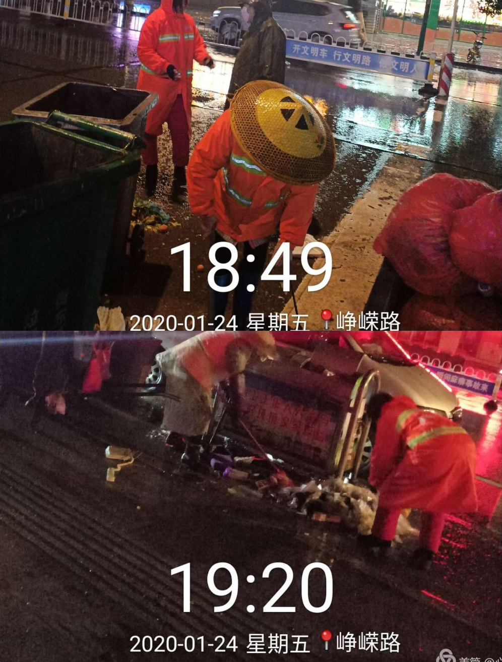 除夕夜,片區(qū)管理員帶領(lǐng)各片區(qū)員工,冒大雨清理所有路面垃圾
