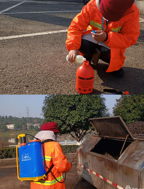 公司車隊(duì)配備出兩輛水車專用于消毒,針對轄區(qū)內(nèi)街道路面,所有垃圾容器及公交站臺和一些公共設(shè)施每天定時(shí)全方位消殺滅菌